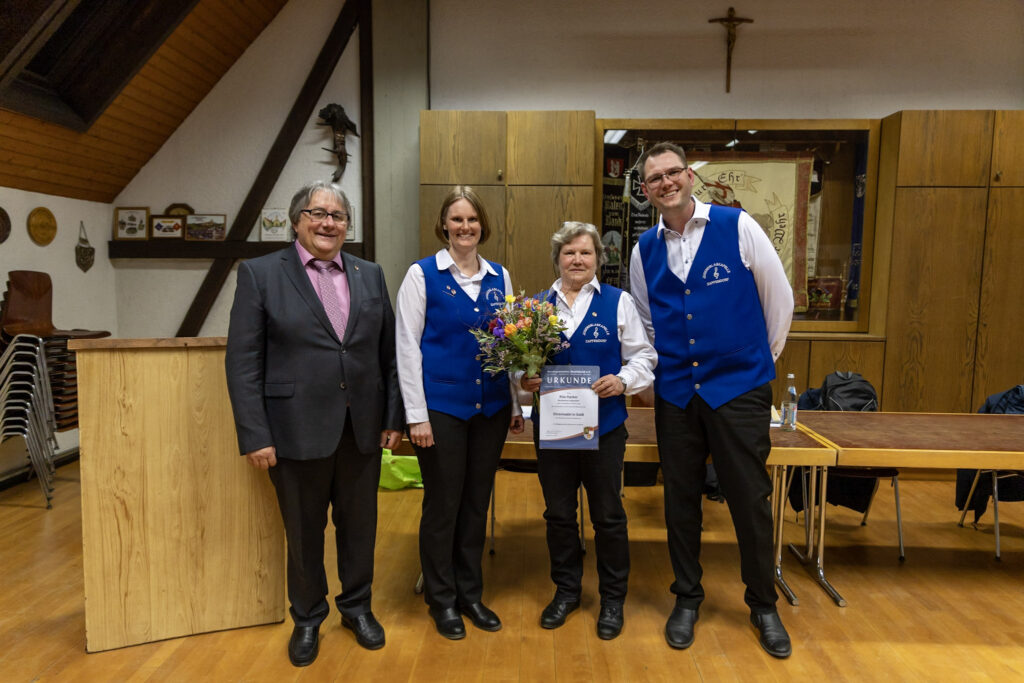 Eine besondere Ehrung für 50 Jahre aktives Musizieren wurde Rita Hacker zuteil. Die Anwesenden honorierten diese besondere Leistung mit einem langanhaltenden Applaus im Stehen. Rita Hacker wurde ein Blumenstrauß und eine Urkunde überreicht. Die Vorsitzenden bedankten sich bei ihr für ihre langjährige Treue für den Verein.